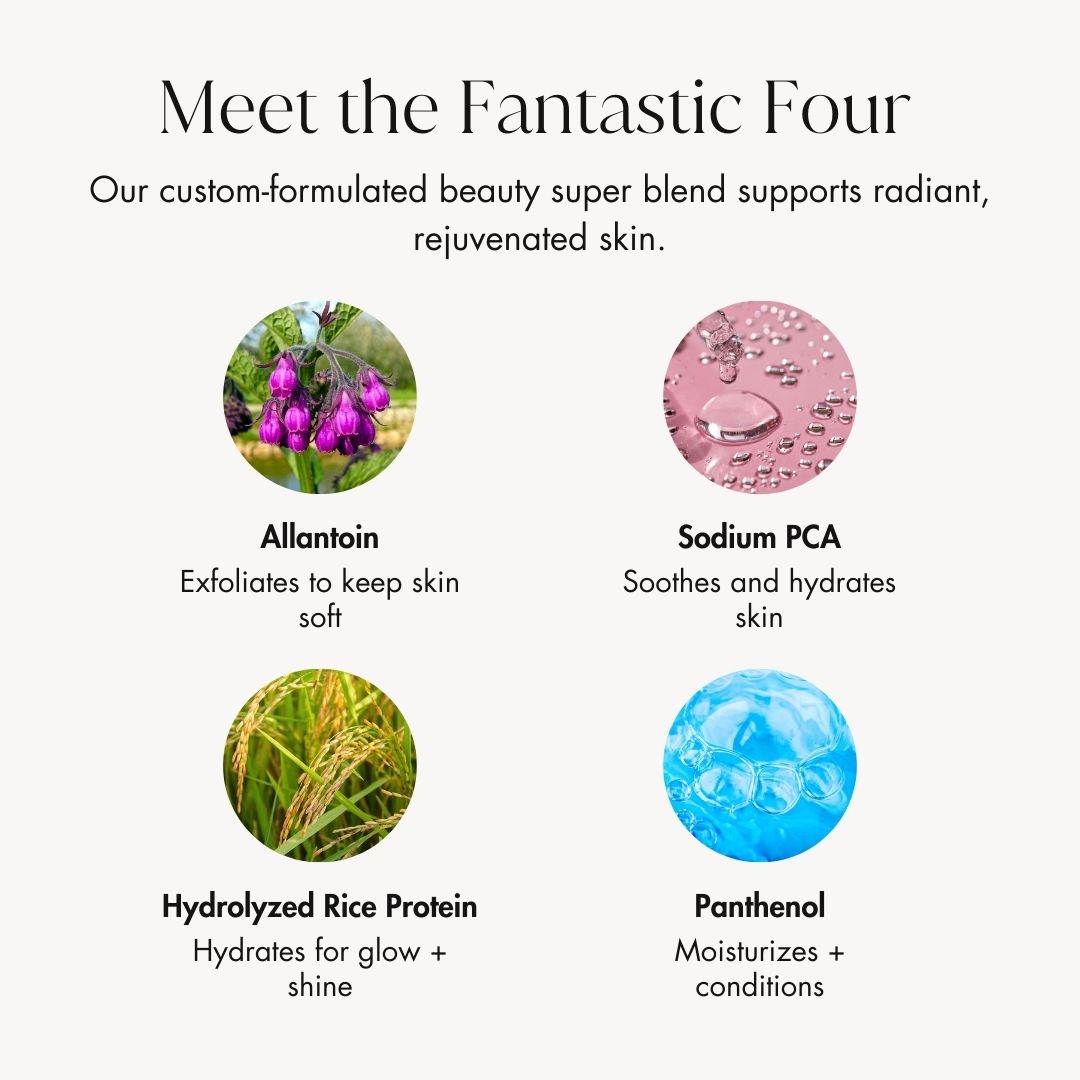 Hydrolyzed Rice Protein: Enhances water retention and provides a source of amino acids, peptides and proteins - promoting smoother, more supple skin.